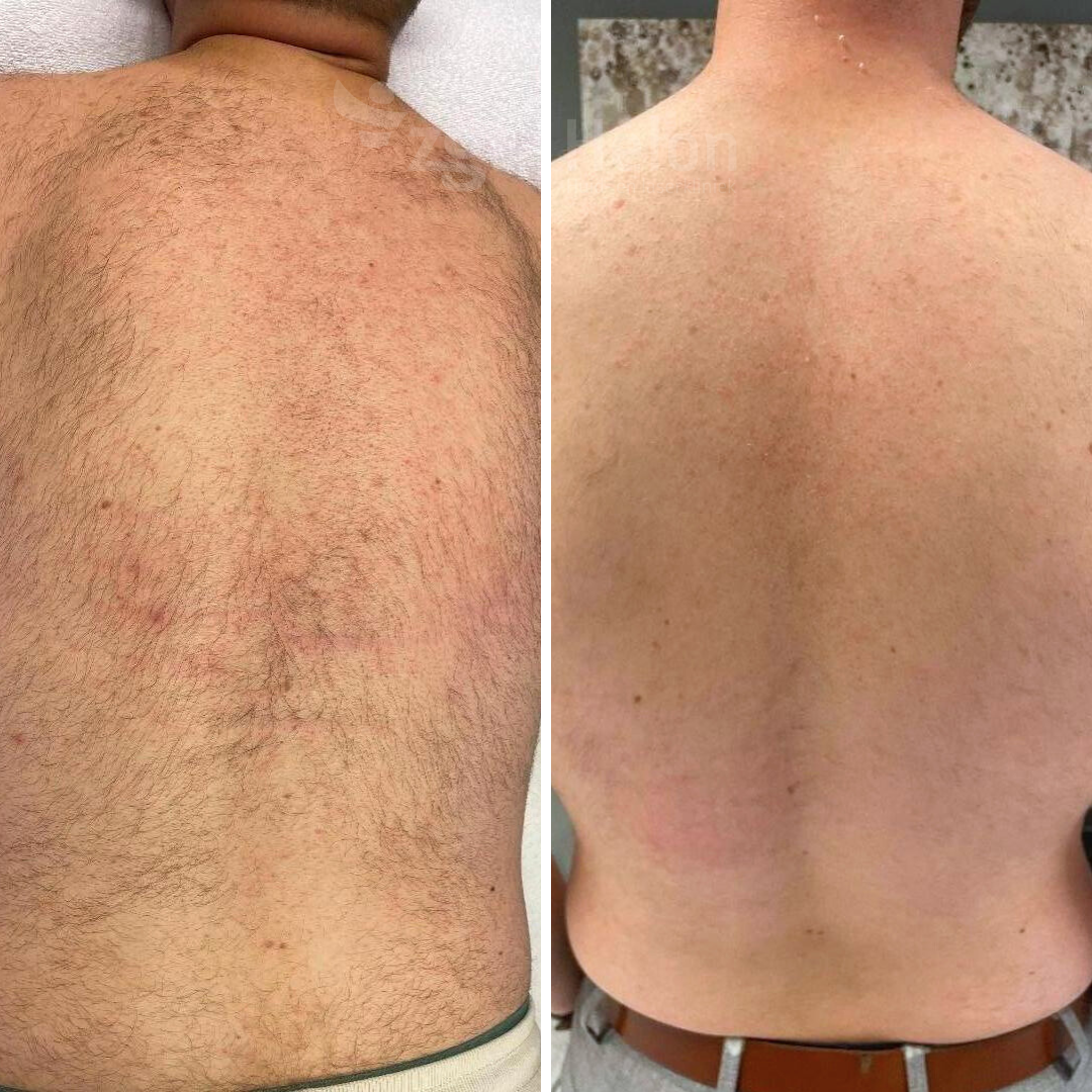 Aangezien de laser alleen werkt op pigment, is bij zwarte, donkerbruine en bruine haren goed resultaat te verwachten. Rode, blonde, grijze, witte en donsharen kunnen niet behandeld worden door middel van laser. Het aantal behandelingen dat nodig is voor een optimaal resultaat ligt gemiddeld tussen de 5 en 10 behandelingen. Dit hangt af van de soort beharing en de locatie op het lichaam. Er kunnen geen garanties gegeven worden, maar gemiddeld zal 60 tot 80% van de beharing definitief verdwijnen. De haartjes die wel terugkomen zijn dunner en lichter en worden vaak als minder storend ervaren. Onder invloed van medicatie of hormonen kunnen haarzakjes die voorheen niet actief waren, toch een haartje gaan aanmaken. Het is mogelijk om deze ‘nieuwe’ haren ook te behandelen door middel van laserontharing.
